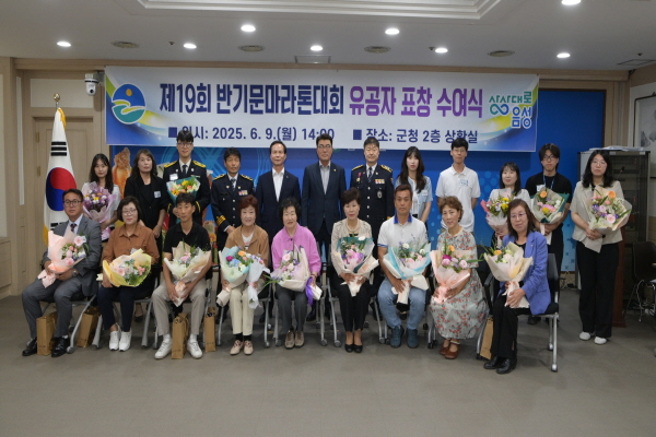 음성군은 9일 군청 상황실에서 ‘제19회 반기문마라톤대회’의 성공 개최를 위해 적극 협조해 준 유공자에 대해 표창 수여식을 개최했다.